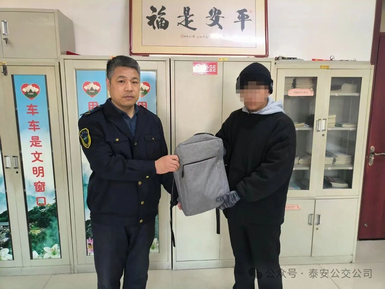 近日,泰山職業(yè)技術學院的齊同學專程來到泰安公交第三分公司,順利領回了自己失而復得的背包??粗嘲鼉?nèi)價值5000余元的筆記本電腦和父母給的200元現(xiàn)金分文未少,齊同學難掩激動,連連對39路公交車駕駛員侯同尚及分公司工作人員的熱心幫助表示感謝。