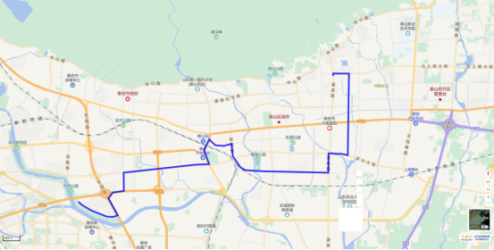 目前24路首末站為泰安老街公交停車場和碧霞大街公交停車場。該線路自溫泉路北段進(jìn)入環(huán)山路后,與多條線路重復(fù)運(yùn)行,為減少線路重復(fù),結(jié)合泰安老街、寶龍城市廣場首末站充電樁建設(shè)實(shí)際,優(yōu)化調(diào)整24路由泰安老街公交停車場—泮河北路—長城路—泮河大街—望岳西路—靈山大街—龍?zhí)堵?mdash;財(cái)源南街—校場街—南湖大街—溫泉路—靈山大街—花園路—北上高大街—溫泉路—寶龍城市廣場。優(yōu)化調(diào)整后運(yùn)行路線圖如下: